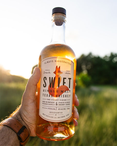 At Swift Distillery, we believe whiskey is about more than what’s in the glass, it’s about slowing down, sharing great meals, and enjoying meaningful conversations with good company. Our handcrafted approach means that almost everything is done by Amanda and Nick themselves, bucket by bucket, drop by drop, barrel by barrel, ensuring that each bottle tells its own unique story shaped by our commitment to quality and the distinctive character of Texas aging.